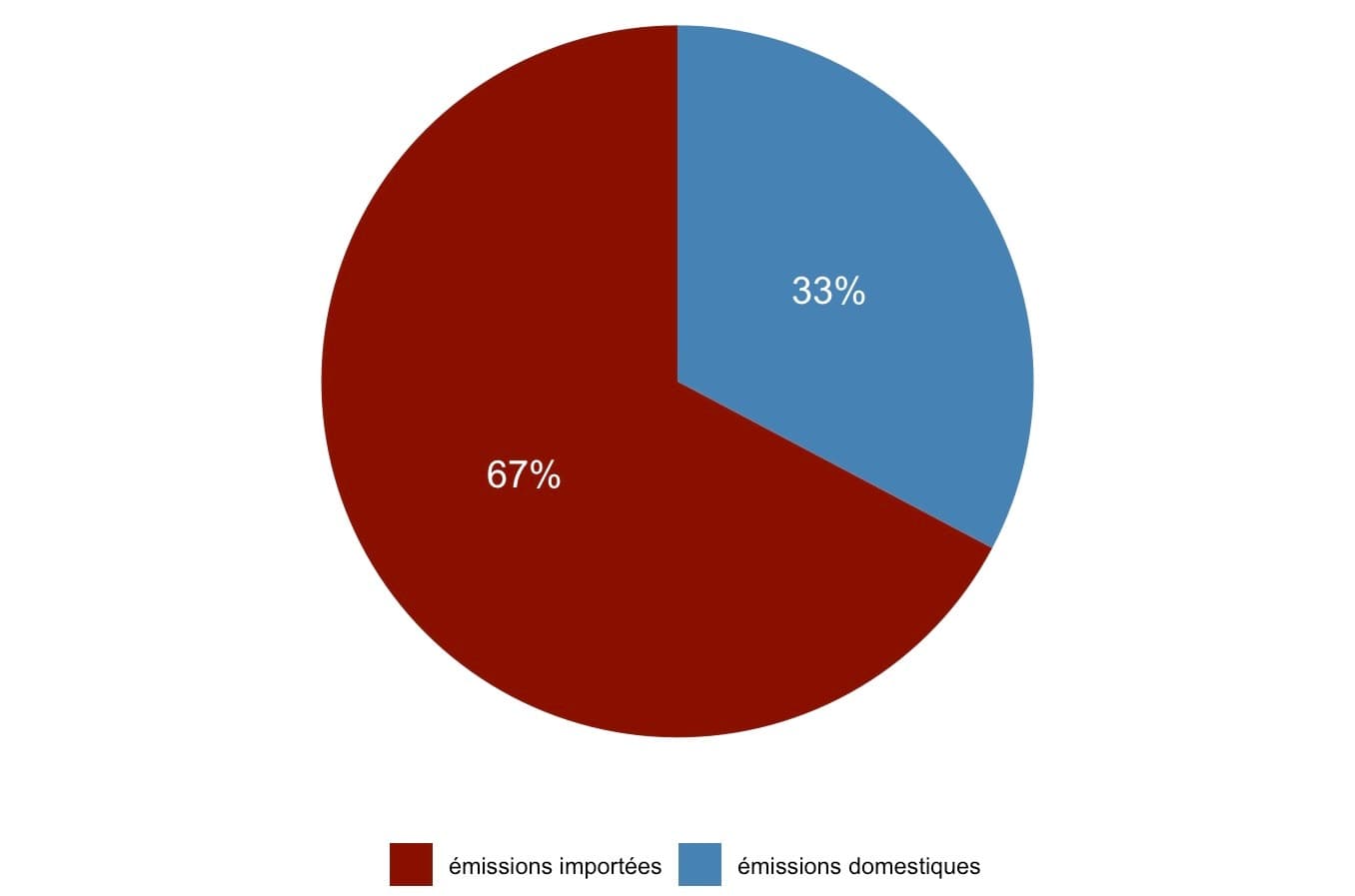 Selon les données de l’Office fédéral de la statistique, au moins deux tiers de notre empreinte climatique totale proviennent de l’étranger (2). Alors que les émissions domestiques ont pu être réduites d’environ 23 %, les émissions importées n’ont guère baissé depuis 2000, et ont même fortement augmenté selon certaines estimations. L’Office fédéral de la statistique parle d’une baisse d’à peine 1 %, tandis que le Global Carbon Project évoque une hausse de plus de 30 % (7).