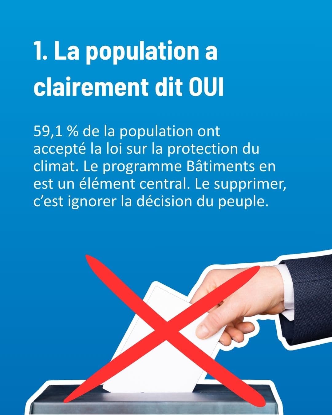 La Commission des finances vient d’approuver la suppression complète du financement fédéral du programme Bâtiments. Cette coupe d'environ 400 millions de francs est une attaque majeure à la transition énergétique.